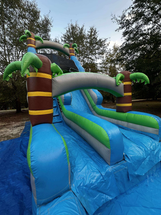 Glide into summer fun with this 20ft Palm Beach Waterslide: a tall, colorful inflatable slide designed for splashy backyard parties, poolside events, and community gatherings. At roughly 20 feet tall, it provides a thrilling but family-friendly descent that feels fast and exciting without being intimidating for older kids and most teens. The Palm Beach styling evokes tropical vibes—so it doubles as a lively visual centerpiece that enhances any luau, beach party, birthday, or school celebration.