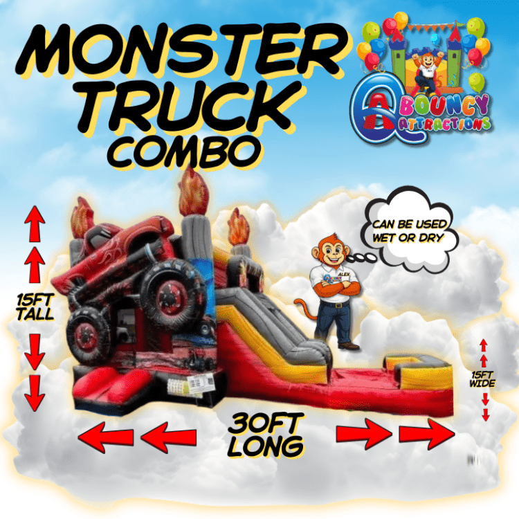 3n1 Monster Truck Jumper with slideππ Fun Zone Package:3n1 Monster Truck Jumper with slide103338075_2670117_17929690100Rev up the fun with the 3n1 Monster Truck Jumper! This beast not only lets you bounce to your heart's content, but it also features a thrilling slide that plunges you right into a refreshing pool. Perfect for parties, it's a guaranteed crowd-pleaser that combines the excitement of a monster truck theme with the joys of jumping, sliding, and splashing all in one. Get ready for a monstrous good time! Fionaππ Fun Zone Package:Fiona103338075_2670117_22696490100"Fiona" is a dazzling, fairy-tale-inspired bounce house that will transform any event into a magical adventure. With its enchanting design and vibrant colors, itβs the perfect playground for kids to leap and laugh, while parents watch their smiles fill the air. Ideal for parties where imagination runs wild! Paradise islandππ Fun Zone Package:Paradise island103338075_2670117_22696510100 Our Paradise Island combo with slide is a big hit for all events! Q&A Bouncy Attractions service Riverdale Ellenwood Decatur. This Combo gives you everything in one jumping climbing and sliding. Our Paradise Island Combo is great for kids parties family gatherings daycares church's and any occasion. With double to quadruple stitching and reinforced seams this inflatable is great for all ages This inflatable has been very popular and is always in high demand so we advise you book as soon as possible! We strive for excellence in everything we do! This inflatable like all of our units undergo a thorough cleaning and sanitizing process after each booking.