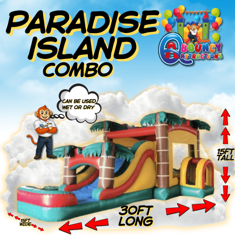 To book this Paradise Island Combo check the availability and click book! If you have any questions about this or any other inflatables or services we offer give us a call 4704629833