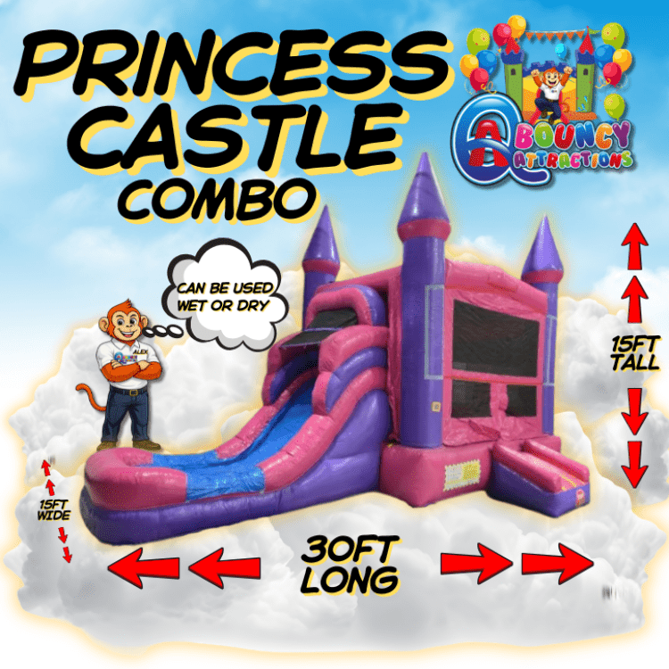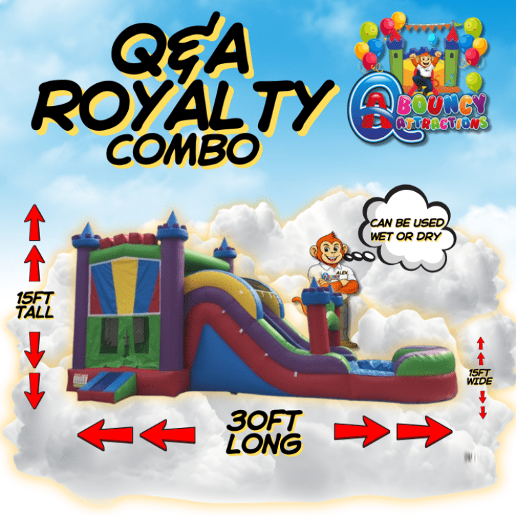 Princess castle comboππ Fun Zone Package:Princess castle combo103338075_2670117_22696570100Step into a fairy tale with the Princess Castle Combo! This enchanting inflatable setup combines the magic of a castle with all the fun of a bounce house. Perfect for birthday parties or special events, it features towers, a slide, and a spacious bouncing area where kids can let their imaginations soar. Delight your guests and create unforgettable memories in this royal playground that's fit for any little princess. Q&A Royalty 3n1 bounce house with slide and pool rentaππ Fun Zone Package:Q&A Royalty 3n1 bounce house with slide and pool renta103338075_2670117_17311460100Dive into regal adventures with the 15x30 Q&A Royalty 3n1 bounce house with slide and pool. This inflatable wonder combines a classic bounce house, a thrilling slide, and a refreshing pool for endless fun. Perfect for creating a kingdom of excitement at any event, where laughter reigns supreme.